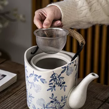 Japanese Hand-Painted Blue & White Porcelain Tea and Coffee Set